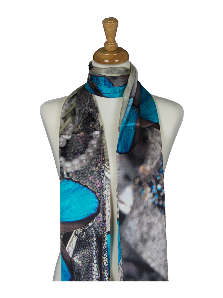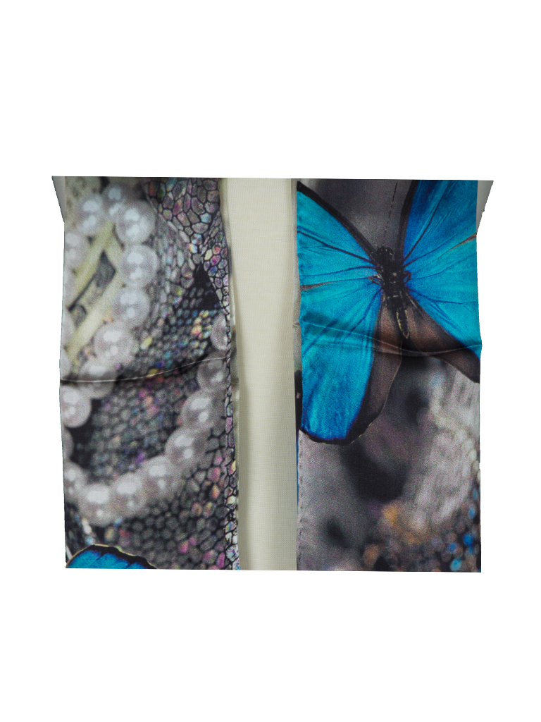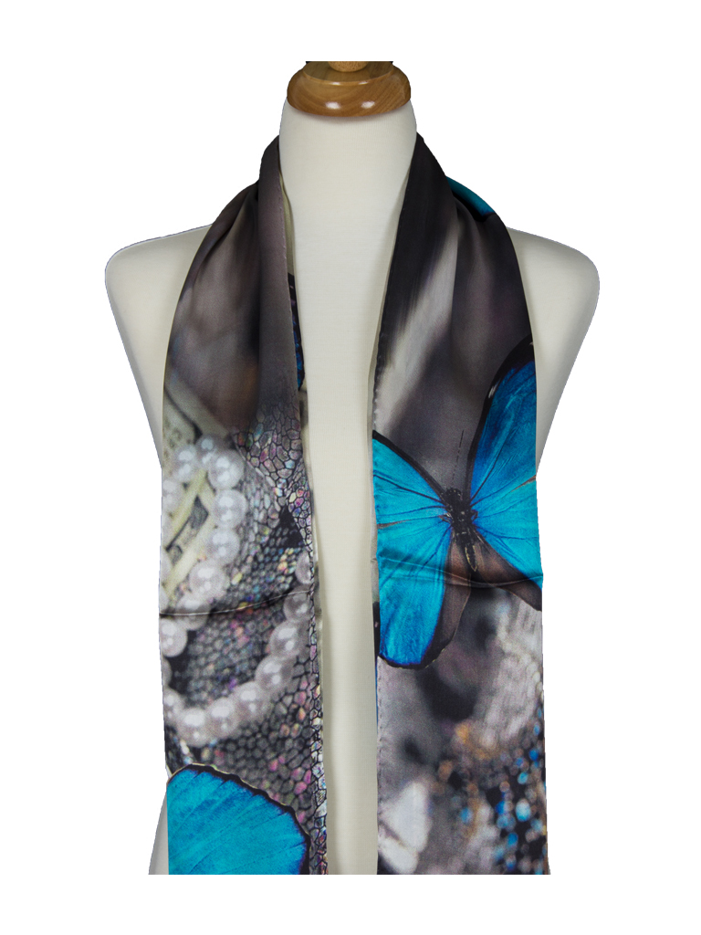 Blue Butterfly Treasure Soft Mulberry Satin Silk Stole Women Long Scarf